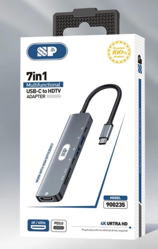 حوّل جهازك إلى مركز متعدد الاستخدامات مع تحويلة SPON 7 في 1 من النوع C، التي تتيح لك توصيل أجهزة متعددة عبر منفذ واحد فقط. مع دعم HDMI، USB 3.0، قارئ كروت SD/TF، وشحن PD، هذه التحويلة هي الحل المثالي للعمل والتنقل بكفاءة عالية ودقة فيديو تصل إلى 4K.