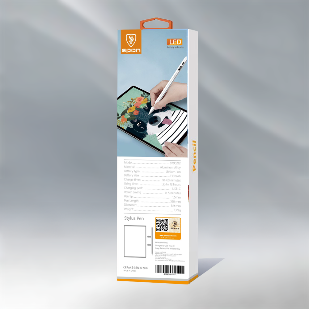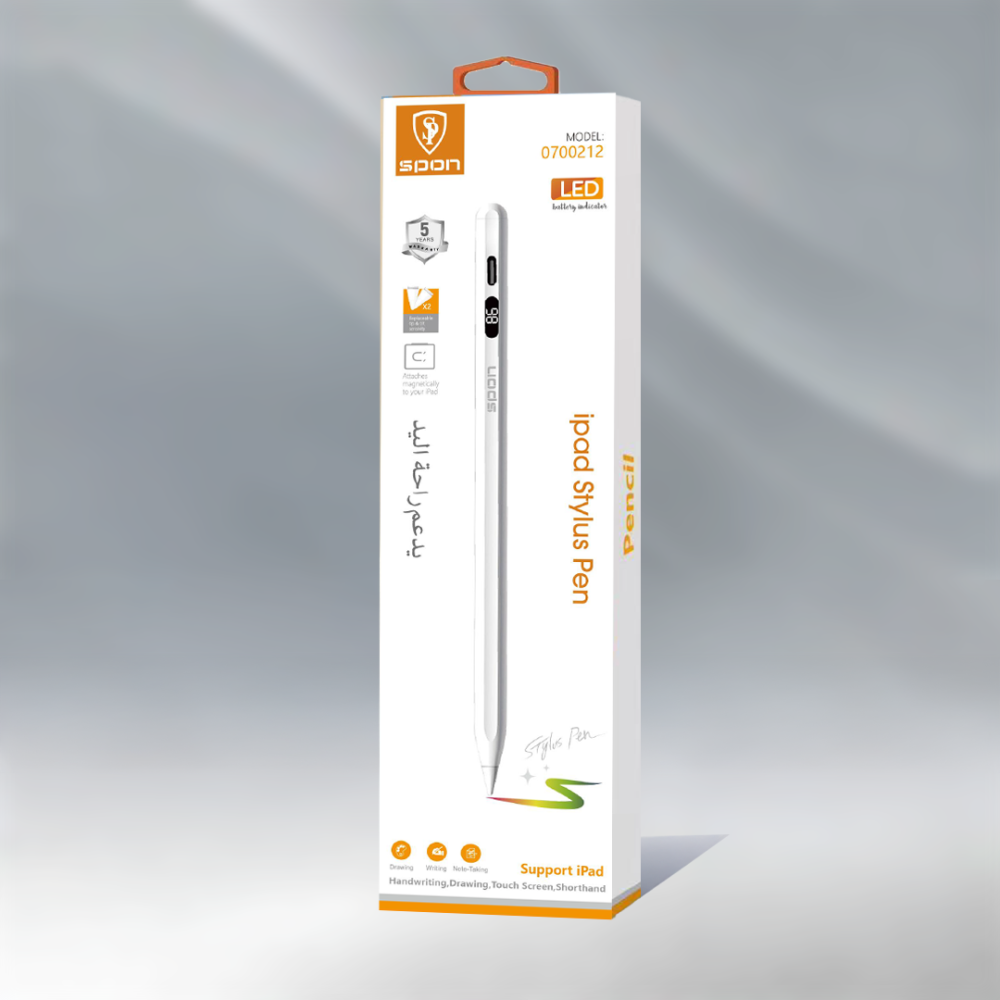 قلم تتش للايباد ماركة SPON : 0700212 هو الخيار المثالي لتحسين تجربتك مع جهاز الايباد. مع تصميم دقيق وراحة في الاستخدام، يتيح لك القلم الكتابة والرسم بدقة عالية على شاشة جهازك اللمسية. سواء كنت تستخدمه للعمل أو للترفيه، سيقدم لك هذا القلم أداءً ممتازًا.
